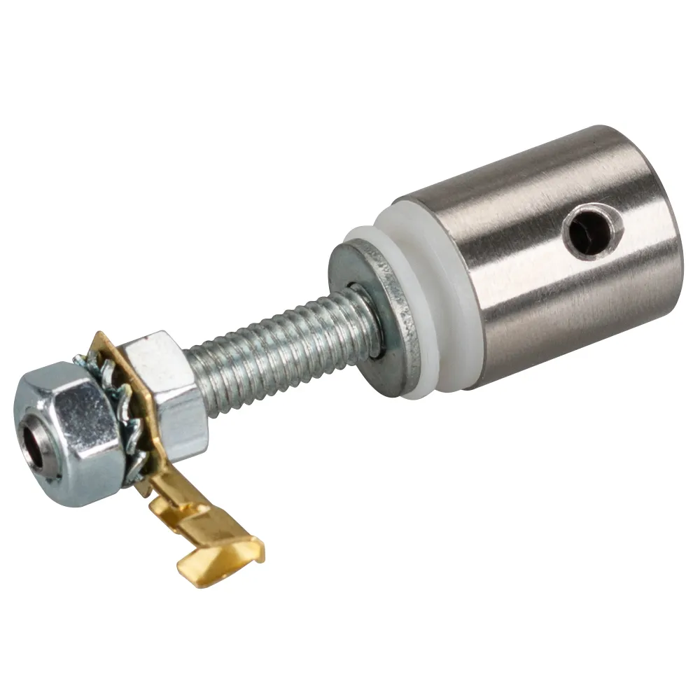 Поперечный держатель прутка/троса/провода для профиля BOX и других. Электрически изолирован от профиля, подходит для низковольтного питания <40В. Предназначен для подвешивания светильников и регулировки высоты.