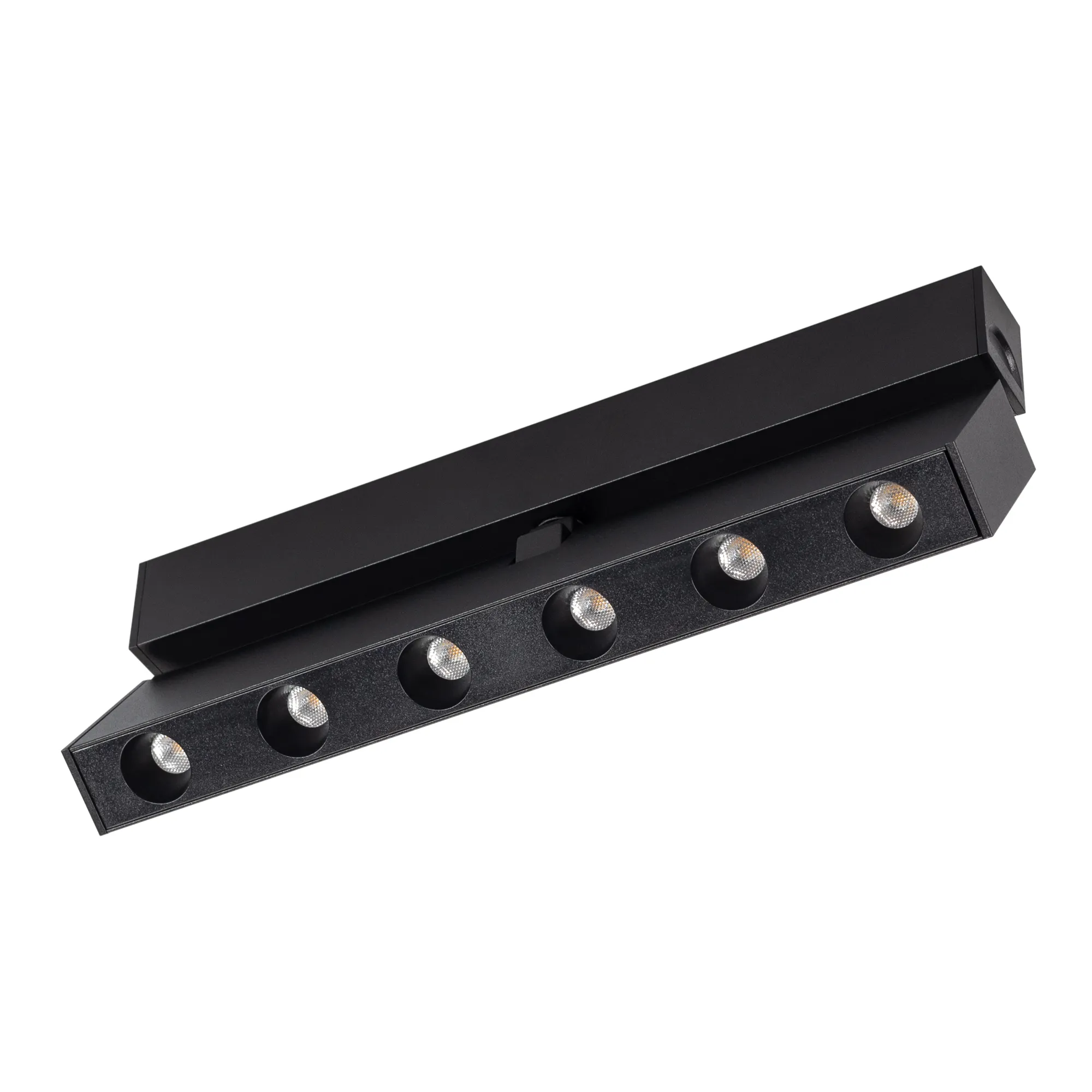 Светильник поворотный для магнитных треков шириной 25мм, 6Вт. Цвет свечения ТЕПЛЫЙ 3000K, световой поток 400 лм, угол 30°, CRI>90. Корпус прямоугольный, металл, цвет черный, IP20. Размеры LxWxH 204x20x46мм. Входное напряжение DC24V, мощность 6Вт. Драйвер DС24V/AC230V поставляется отдельно. Диммируется только с 026407, 027633.