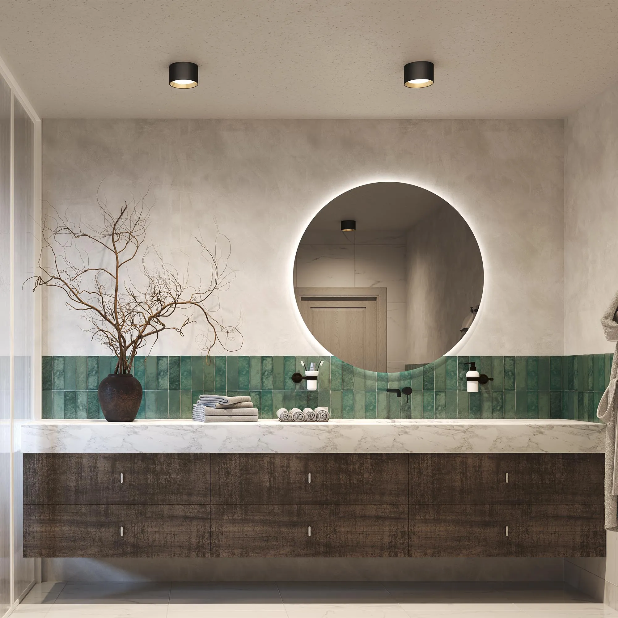 Накладной светильник. Мощность 12 Вт, св. поток 900-960 лм, 80-85 лм/Вт, теплый 2700 K, теплый 3300K, дневной 4000K (переключается), CRI>90, угол 80°, напряжение питания 230 В. Белый круглый корпус из алюминия, экран PC, степень защиты IP54. Размер: диаметр 120 мм, высота 80 мм. Монтаж накладной. Драйвер 20-40 В, 300 мА, пульсация <2%.