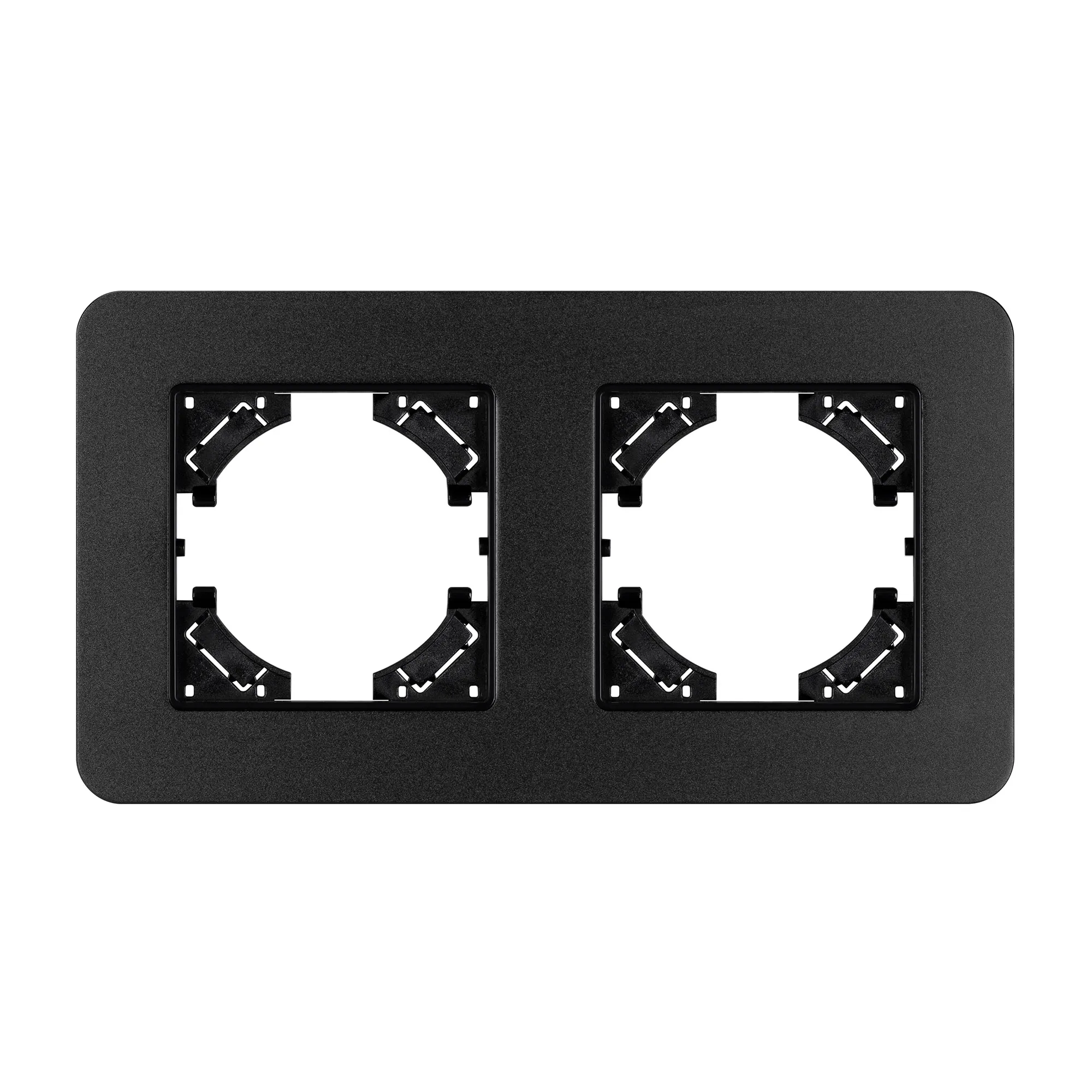 Рамка алюминиевая на 2 поста, под встраиваемый механизм. Цвет - черный с Soft-Touch покрытием. Уровень герметичности IP20. Ориентация монтажа - горизонтальная (основным ориентиром служат посадочные выступы для накладки механизма). Габаритные размеры: длина 157 мм, ширина 86 мм, высота 7 мм. Гарантийный срок 12 мес.
