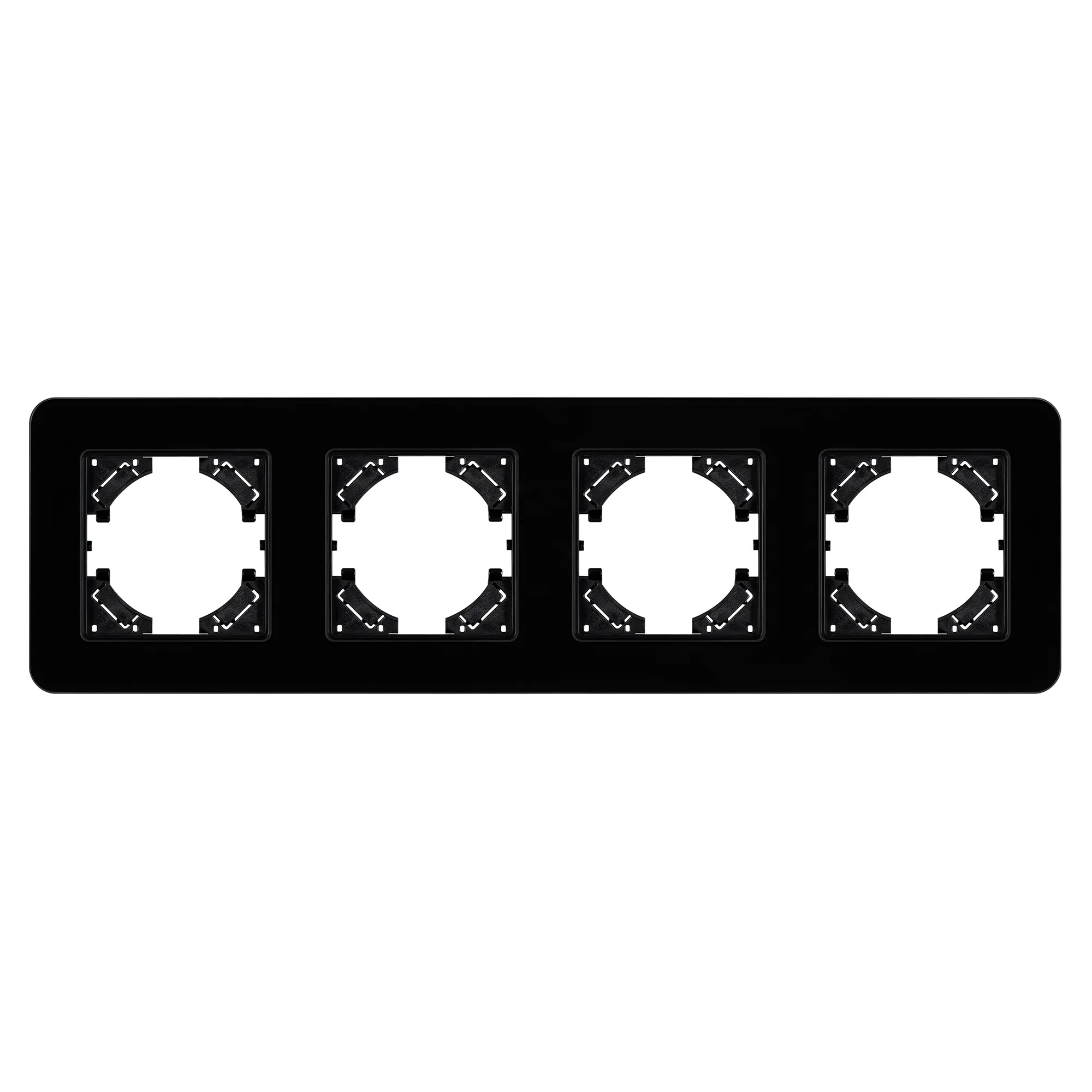 Рамка стеклянная на 4 поста, под встраиваемый механизм. Цвет - черный. Уровень герметичности IP20. Ориентация монтажа - горизонтальная (основным ориентиром служат посадочные выступы для накладки механизма). Габаритные размеры: длина 299 мм, ширина 86 мм, высота 7 мм. Гарантийный срок 12 мес.