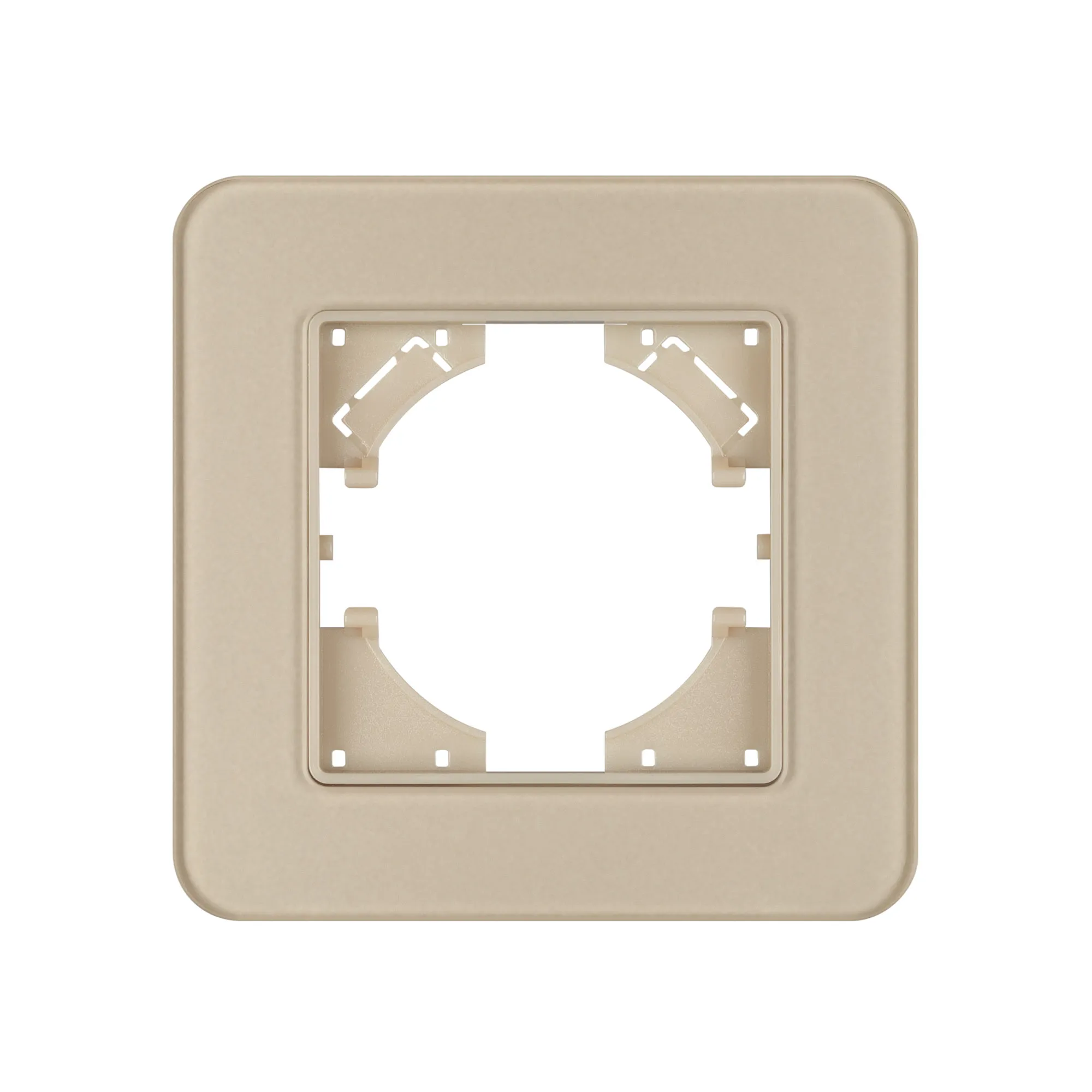 Рамка стеклянная на 1 пост, под встраиваемый механизм. Цвет - золотой с Soft-Touch покрытием. Уровень герметичности IP20. Ориентация монтажа - горизонтальная (основным ориентиром служат посадочные выступы для накладки механизма). Ориентация монтажа горизонтальная и вертикальная. Габаритные размеры: длина 86 мм, ширина 86 мм, высота 7 мм. Гарантийный срок 12 мес.